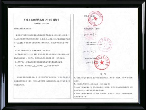 廣德縣笄山風(fēng)景區道路太陽能庭院燈(dēng)采(cǎi)購及安裝(zhuāng)(采購編號:NT2013-006),於 2013年9月3日進行公(gōng)開招標(biāo),經政(zhèng)府采購評標小組一致評定,評定結果如下: